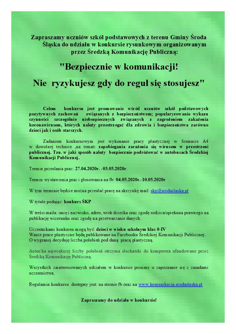 Jesteś tutaj: Środa Śląska > Komunikacja > Aktualności > KONKURS DLA UCZNIÓW SZKÓŁ PODSTAWOWYCH! > konkurs plakat (1)